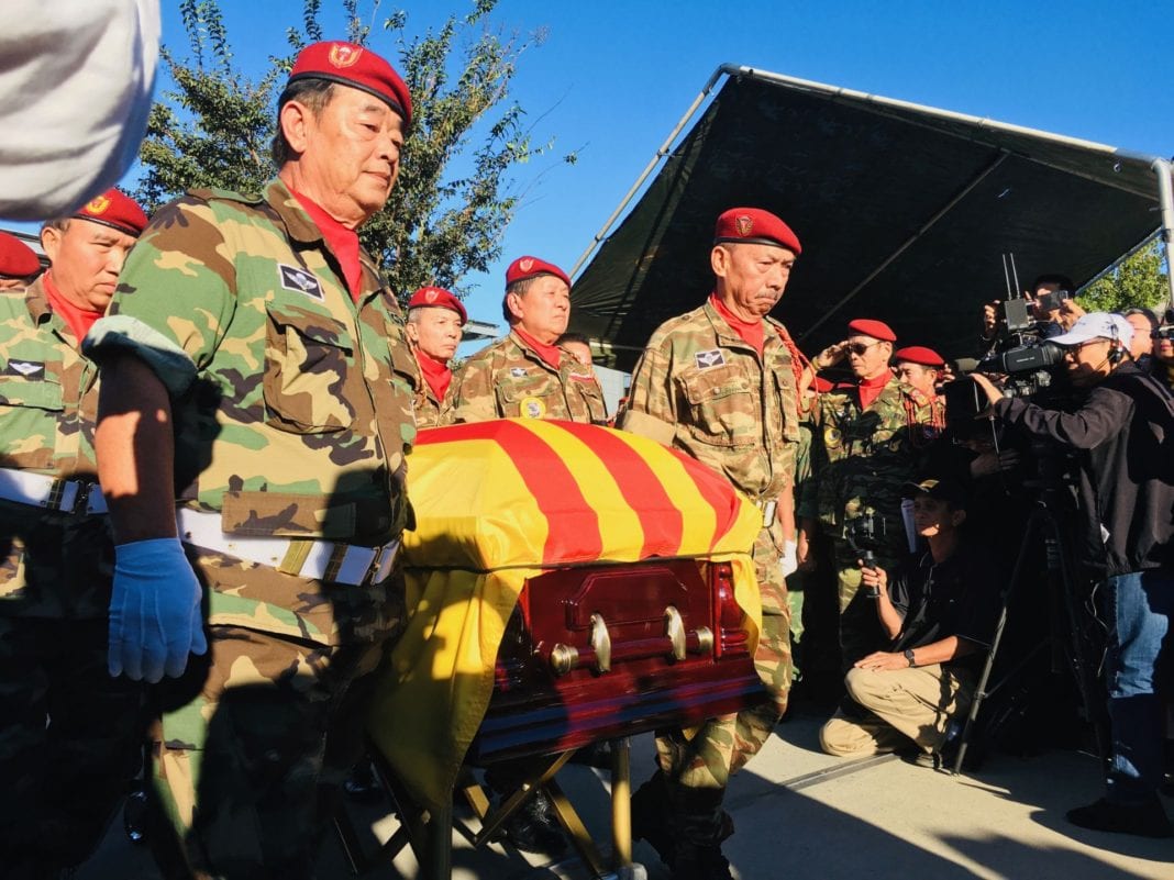 Chiếc quan tài trong đó mang theo hài cốt của 81 binh sĩ Nhảy Dù của Quân Lực VNCH đang chuẩn bị cho buổi lễ. (Hình: Dân Huỳnh/Người Việt) Nhóm Phóng Viên Người Việt (Tường thuật)| Đúng 8:30 sáng nay, 26 Tháng Mười 2019, lễ tưởng niệm và an táng 81 hài cốt tử sĩ Nhảy Dù Quân Lực Việt Nam Cộng Hòa diễn ra tại Tượng Đài Chiến Sĩ Việt Mỹ và sau đó tại nghĩa trang Westminster Memorial Park, thành phố Westminter, Nam California, Hoa Kỳ. Tham dự buổi lễ gồm đông đảo các quân nhân quân lực Việt Nam Hòa, Gia Đình Mũ Đỏ, còn có nhân vật quan trọng là cựu Thượng Nghị Sĩ Jim Webb, Thị trưởng Trí Tạ Westminster, cùng các đồng hương Việt Nam… Lễ Tưởng Niệm Đúng 9 giờ sáng buổi lễ tưởng niệm chính thức bắt đầu. Mở đầu lễ tưởng niệm là phát biểu của cựu Thượng Nghị Sĩ Jim Webb, Thị trưởng Trí Tạ Westminster, Phó Thị Trưởng Kimberly Hồ, Bộ trưởng Bộ Hải Quân Hoa Kỳ Richard Spencer, Chủ tịch sáng lập FedEx, ông Fred Smith, nhà văn Phan Nhật Nam, Bác Sĩ Nguyễn Quốc Hiệp, Chủ tịch Gia Đình Mũ Đỏ Trung Ương (GĐMĐ),… Các bài phát biểu của các diễn giả đều nhắc lại sự hy sinh cao cả của các tử sĩ, nhắc lại lý do vì sao 33 năm hài cốt của họ bị ‘kẹt’ tại Hawaii, gọi họ là anh hùng, bày tỏ lòng tiếc thương, và khẳng định mọi người đã không quên họ, và hôm nay họ đã được trở về nhà theo đúng nghĩa là tại nghĩa trang, trong lòng Little Saigon, nơi được xem là ‘thủ đô của người Việt tị nạn’ tại Hoa Kỳ. Chiếc quan tài trong đó mang theo hài cốt của 81 binh sĩ Nhảy Dù của Quân Lực VNCH đang chuẩn bị cho buổi lễ. (Hình: Dân Huỳnh/Người Việt) Các cựu quân nhân quân lực VNCH, Gia Đình Mũ Đỏ, đứng chào quan tài đựng 81 bộ hài cốt. (Hình: Dân Huỳnh/Người Việt) Một phụ nữ Việt Nam đeo khăn tang xúc động và bật khóc tại lễ tưởng niệm. (Hình: Dân Huỳnh/Người Việt) Chiếc quan tài được trang trọng đặt trước Tượng Đài Việt Mỹ. (Hình: Văn Lan/Người Việt) Cựu TNS Jim Webb phát biểu. (Hình: Văn Lan/Người Việt) Bộ trưởng Bộ Hải Quân Hoa Kỳ Richard Spencer. (Hình: Văn Lan/Người Việt) Thị Trưởng Trí Tạ, Thành phố Westminster. (Hình: Văn Lan/Người Việt) Nhà văn Phan Nhật Nam (phải) và Tài Tử Kiều Chinh. (Hình: Dân Huỳnh/Người Việt) Rất đông đồng hương và quan khách tham dự buổi tưởng niệm này. (Hình: Văn Lan/Người Việt) Bảy phát súng tiễn biệt các tử sĩ. (Hình: Dân Huỳnh/Người Việt) Lễ An Táng Đúng 11 giờ trưa 26 Tháng Mười, tại nghĩa trang Westminster Memorial Park, thành phố Westminster lễ an táng 81 hài cốt của các ‘Thiên Thần Mũ Đỏ” VNCH bắt đầu. Bà quả phụ Lê Thị Sẻ mang di ảnh của chồng, Mũ Đỏ Nguyễn Thảo, một trong 81 hài cố tử sĩ VNCH. (Hình: Dân Huỳnh/Người Việt) Trong số những người tham dự lễ an táng, có một số thân nhân của các tử sĩ từ các tiểu bang khác về tiễn đưa người thân của mình. Các anh đã chính thức được an nghỉ. (Hình: Dân Huỳnh/Người Việt) ***** Vào ngày 11 Tháng Mười Hai, 1965, một chiếc máy bay C-123 bị rơi trên một vùng hẻo lánh ở Việt Nam, làm phi hành đoàn gồm bốn phi công Mỹ và 81 chiến sĩ Nhảy Dù VNCH thiệt mạng. Lúc đó, Tiểu Đoàn 3 và Tiểu Đoàn 7 Nhảy Dù vừa xong nhiệm vụ, chuẩn bị chuyển về Sài Gòn, thì được lệnh của Quân Đoàn 2 ở lại để đánh giải vây cho Sư Đoàn Mãnh Hổ của Nam Hàn đang bị kẹt ở Tuy Hòa. Chẳng may, Đại Đội 72 thuộc Tiểu Đoàn 7 lại đi trên chiếc máy bay C-123 định mệnh đó. Vùng máy bay rơi là khu rừng hiểm trở, cách Tuy Hòa 32 cây số về phía Tây, gần như không thể vào được. Mãi đến năm 1974, khi người dân đi sâu vào rừng kiếm củi, họ mới phát hiện xác máy bay và các hài cốt. Chiếc C-123 hôm đó bay từ phi trường Pleiku đến phi trường Tuy Hòa thì bị nạn. Tuy nhiên, tất cả hài cốt bị trộn lẫn vào nhau, nên người ta đưa vào một quan tài, và chuyển về Bangkok, Thái Lan. Qua thử nghiệm DNA, Bộ Quốc Phòng Mỹ xác nhận được danh tính của bốn phi công Mỹ, đem về chôn cất ở Nghĩa Trang Quốc Gia Arlington. Trong khi đó, không có thông tin gì để xác nhận 81 người Việt Nam còn lại. Năm 1986, 81 di cốt này được chuyển về Cơ Quan Tìm Kiếm Tù Binh/Người Mất Tích (DPAA) ở Hawaii, nơi phụ trách xác định danh tính những người tử trận hoặc mất tích trong chiến tranh. Cách đây khoảng hai năm, ông Jim Webb, từng là bộ trưởng Bộ Hải Quân dưới thời Tổng Thống Ronald Reagan, được Bộ Quốc Phòng Mỹ giao trách nhiệm giải quyết số phận của 81 di cốt này. Ông Jim Webb đã hai lần đề nghị chính quyền CSVN tiếp nhận số hài cốt này để các tử sĩ trở về quê nhà nhưng đều bị từ chối. Hôm Thứ Sáu, 13 Tháng Chín, một chiếc máy bay của Không Lực Hoa Kỳ chở 81 di cốt này đến California, để trong một căn cứ quân sự. Và hôm nay, hài cốt của họ chính thức được trở về nhà, trong lòng Little Saigon, ‘thủ đô của người Việt tị nạn’. https://www.nguoi-viet.com/little-saigon/