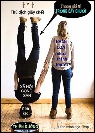 Đáng lẽ phải đón nhận sự bùng nổ của sản xuất đại công nghiệp, sự tập trung đại tư bản, sự bùng nổ của tri thức, khoa học, của tự do cá nhân và sở hữu, của tự do tư tưởng sáng tạo và ngôn luận…, đáng lẽ phải xây dựng một nền dân chủ đa nguyên pháp trị gắn với tinh thần “nhà nước phúc lợi” để dung nạp, chế ngự, điều hòa những tiến bộ văn minh ấy, giúp những giá trị ấy được phát huy để nâng xã hội lên thì trào lưu Cộng sản lại coi tất cả những giá trị tiền phong ấy là kẻ thù phải đạp xuống dưới chân của đám đông cuồng nộ, để khát vọng của cái Búa cái Liềm được quyền xếp đặt lại nhân loại theo sự hiểu biết chủ quan của mình! Bậc thang giá trị theo nguyên mẫu Cộng sản như vậy chính là dựng mô hình “trồng cây chuối” ngược áp đặt lên xã hội, chà đạp lên tất cả những giá trị tinh thần, và cướp trắng tất cả những giá trị vật chất đã có trong xã hội. Vô sản đã lên ngôi chuyên chính thì tất cả những gì là hữu sản, vật chất cũng như tinh thần, chỉ còn là một bọn hạ đẳng, là đối tượng để Vô sản tha hồ tước đoạt.