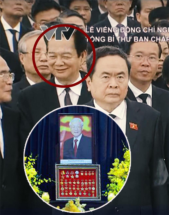 Một hình ảnh vô cùng đặc biệt, in sâu vào ấn tượng của nhiều người, đó là khi tang gia bối rối, nhiều người thể hiện đúng kiểu “mặt như đưa đám” trước linh cữu ông Trọng thì cựu Thủ tướng Nguyễn Tấn Dũng lại có một nụ cưới nhếch mép đầy ẩn ý. Ông Dũng dường như đã cố tình khi mặt hướng lên và nhìn thẳng vào ống kính của báo chí.