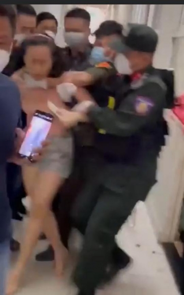 Hai người đàn ông lực lưỡng tiếp tục nắm chặt hai cánh tay chị Lan lôi đi rất thô bạo, rồi ấn chị ngồi xuống chiếc ghế ở giữa sân, trong khi hai người đàn ông vẫn giữ chặt hai cánh tay chị kéo ghì vào tựa ghế. Một người đàn ông khác thò bàn tay thô bạo sờ vào mặt chị; một người khác ngoáy mũi… Vòng ngoài, hàng chục công an, dân quân, cảnh sát cơ động đeo súng vây quanh như bắt một tên tội phạm khủng bố nguy hiểm. Trong khi đó mấy người khác thì ra sức ghi hình toàn bộ những hành vi cưỡng bức và nỗi khốn khổ của người phụ nữ.