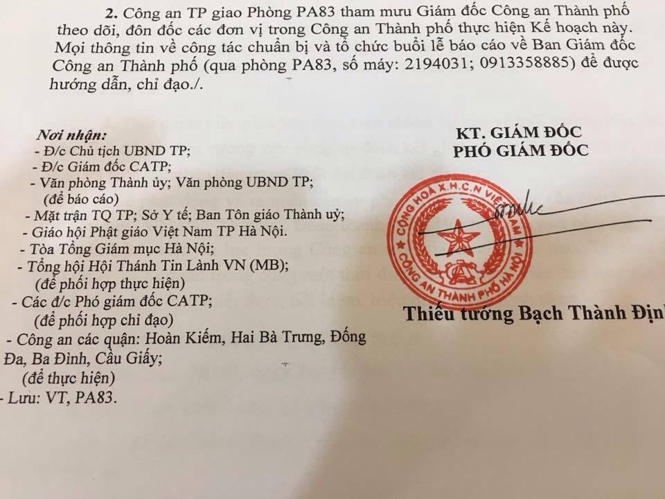 Một đoạn văn bản được cho là chỉ đạo thành lập Hội Đồng Lý Luận CATP do thiếu tướng Bạch Thành Định ký dưới.
