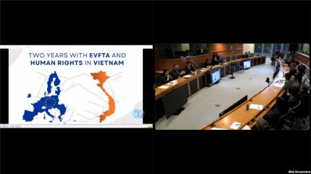Hôm 28/2, các nghị viên Liên minh châu Âu tổ chức hội thảo xem xét mức độ vi phạm nhân quyền và quyền lợi của người lao động Việt Nam sau hơn hai năm chính quyền nước này thực thi Hiệp định Thương mại Tự do giữa EU và Việt Nam (EVFTA). Các diễn giả lên tiếng báo động rằng việc vi phạm nhân quyền, quyền tự do nhóm họp và quyền của người lao động Việt Nam tiếp tục bị chính quyền vi phạm ở mức ngày càng tồi tệ, đồng thời hối thúc các nghị viên EU gây sức ép mạnh hơn đối với chính quyền Hà Nội.