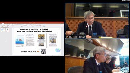 Các thành viên của các tổ chức phi chính phủ về nhân quyền quốc tế và Việt Nam như Tổ chức Phóng viên Không Biên giới (RSF), Ủy ban Thụy Sĩ-Việt Nam (COSUNAM), tổ chức Việt Tân và tổ chức Bảo vệ Người lao động Việt Nam có bài thuyết trình đánh giá mức độ vi phạm nhân quyền trong thời gian chính quyền Việt Nam thực thi EVFTA từ ngày 01/08/2020 đến nay.
